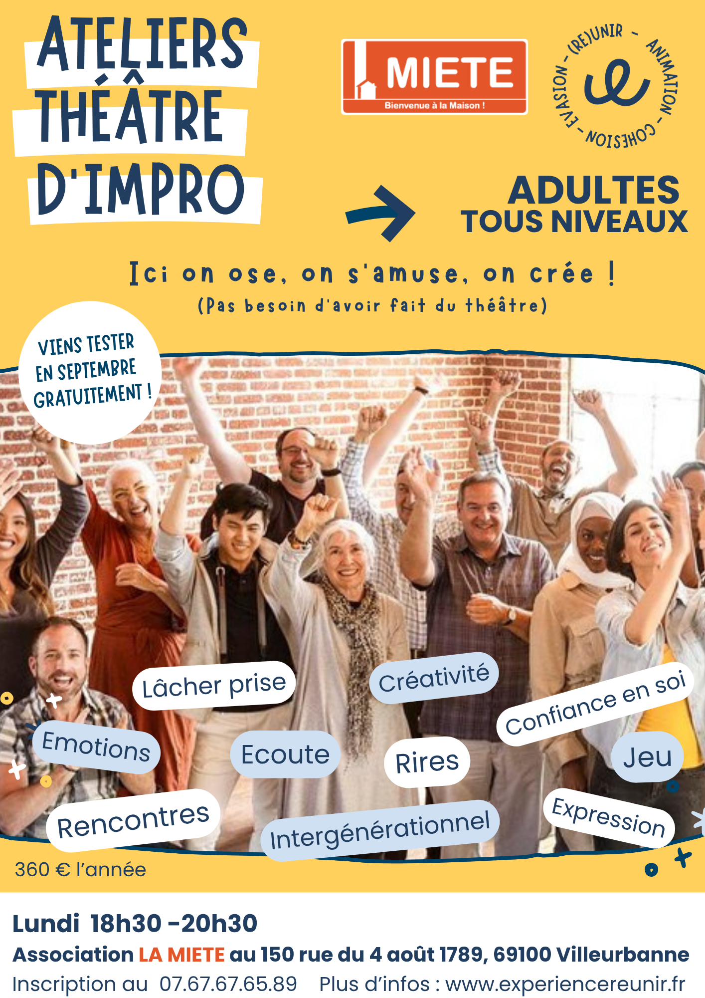 Cette année les cours ont lieux au sein de l’association de la MIETE à Villeurbanne, chaque lundi soir de 18h30 à 20h30